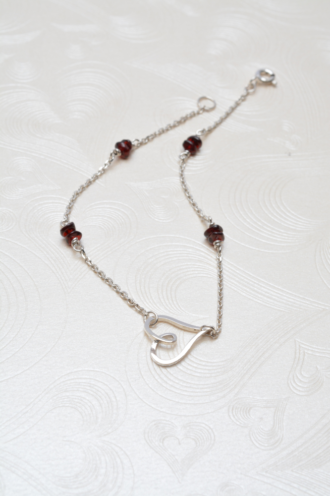 Náramek – srdce s granátky