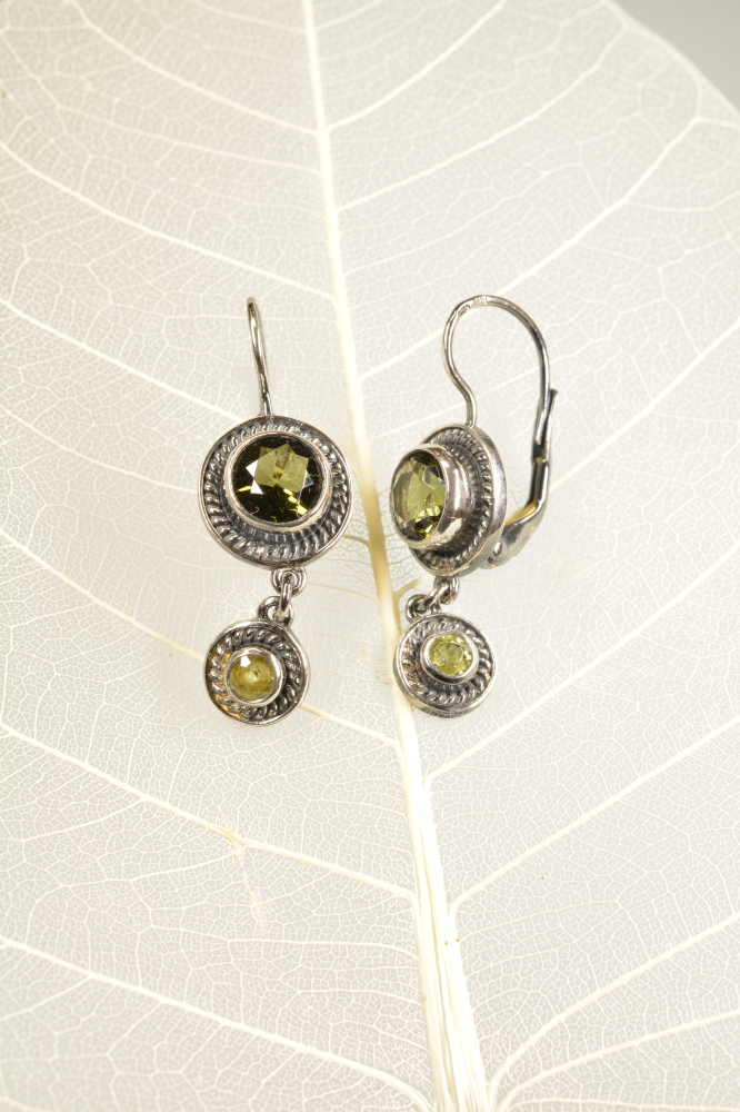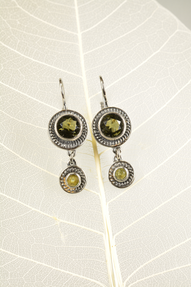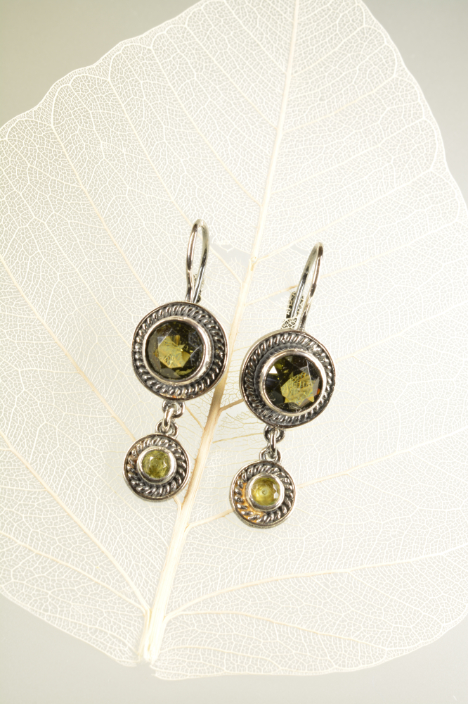 Náušnice - dvoutečník - vltavíny a olivíny